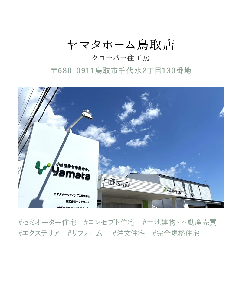 相談場所 ヤマタホーム鳥取店ヤマタホーム倉吉店ヤマタホーム米子店ヤマタホーム(デザインスタジオ) 来場希望日 第一希望日 時間を選択してください09:00~10:00~11:00~12:00~13:00~14:00~15:00~16:00~17:00~ 第二希望日 時間を選択してください09:00~10:00~11:00~12:00~13:00~14:00~15:00~16:00~17:00~ お名前 ふりがな 住所郵便番号 都道府県 都道府県を選択北海道青森県岩手県宮城県秋田県山形県福島県茨城県栃木県群馬県埼玉県千葉県東京都神奈川県新潟県富山県石川県福井県山梨県長野県岐阜県静岡県愛知県三重県滋賀県京都府大阪府兵庫県奈良県和歌山県鳥取県島根県岡山県広島県山口県徳島県香川県愛媛県高知県福岡県佐賀県長崎県熊本県大分県宮崎県鹿児島県沖縄県 市区町村 番地・建物名 メールアドレス 電話番号 イベントご参加人数 建築予定時期 その他ご質問など プライバシーポリシーを確認してください 内容を確認し、同意しました。