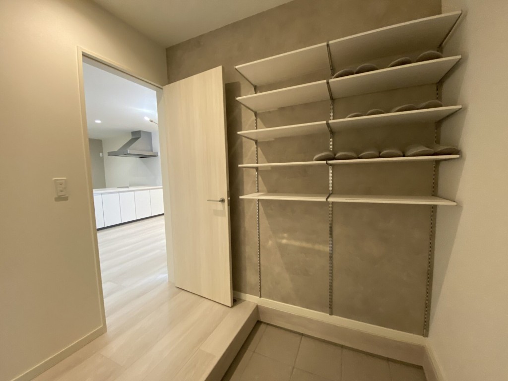 LDKには畳コーナーを設け、くつろぎの場として活用できる空間に。さらにパントリーやキッチンまわりの収納を充実させることで、日々の使い勝手にも配慮されています。