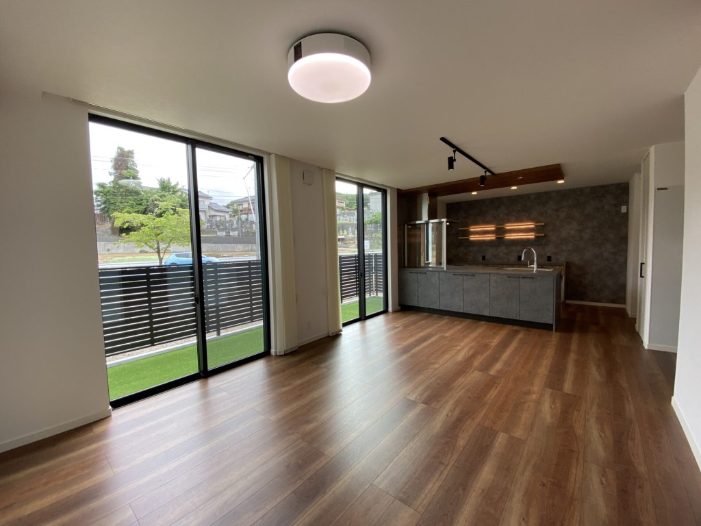 LDKからはお庭の緑が見える設計となっており、室内にいながらも自然を感じられる空間が広がっています。