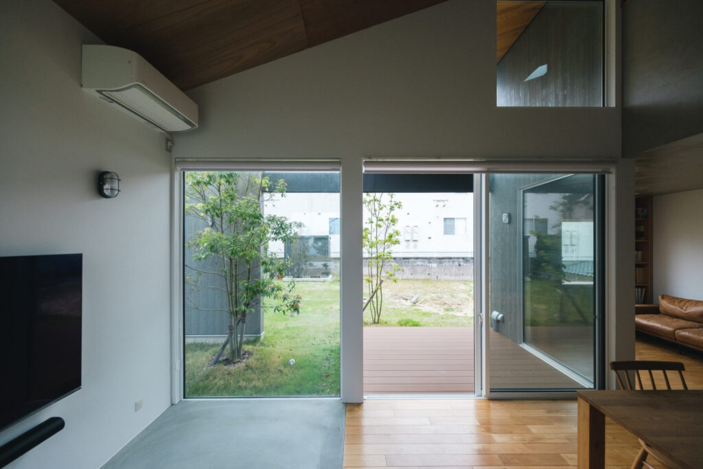 大きな窓の先に中庭が広がり、家のどこにいても外の気配をやさしく感じられます。