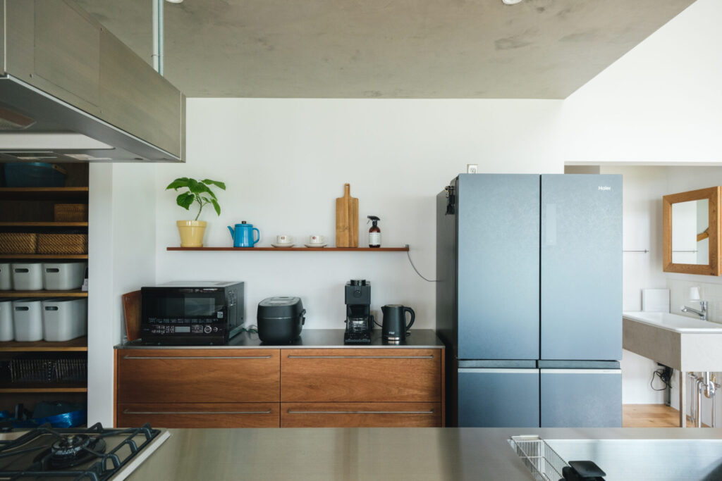見せる棚としまう収納のバランスがよく、日々の道具がすっきり整います。