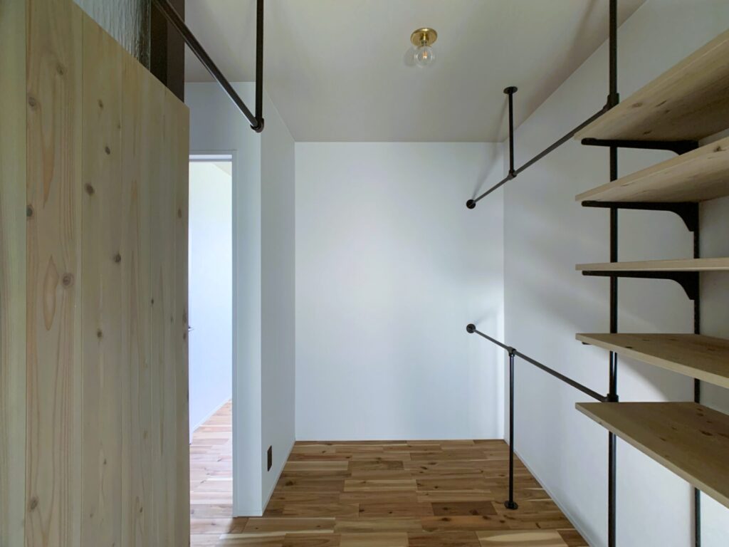 オープン棚のあるウォークインクローゼット