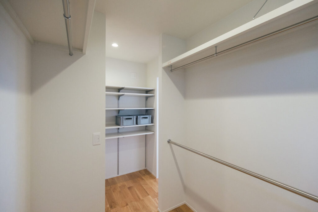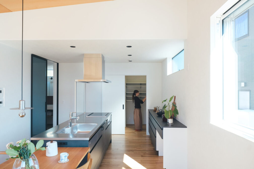 パントリーや収納スペースも設け、暮らしの道具を整えながら心地よく過ごせる住まいになっています。