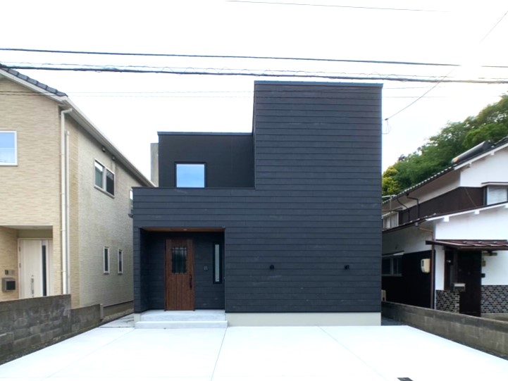 落ち着いたネイビーの外観が印象的な住まい。