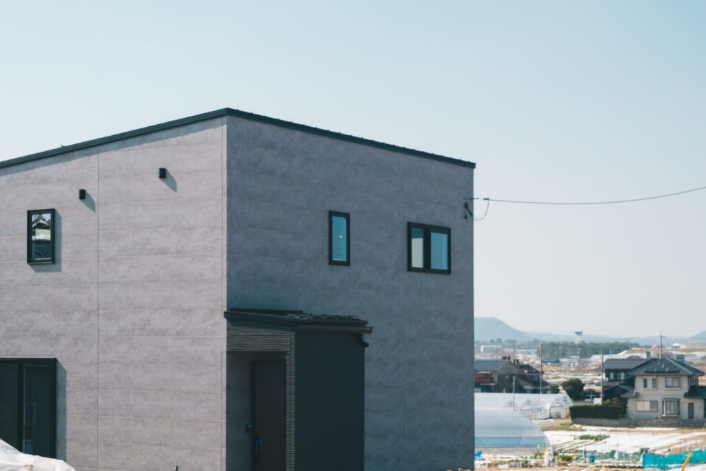 グレーの外壁でまとめた、すっきりとしたシンプルな外観デザイン。